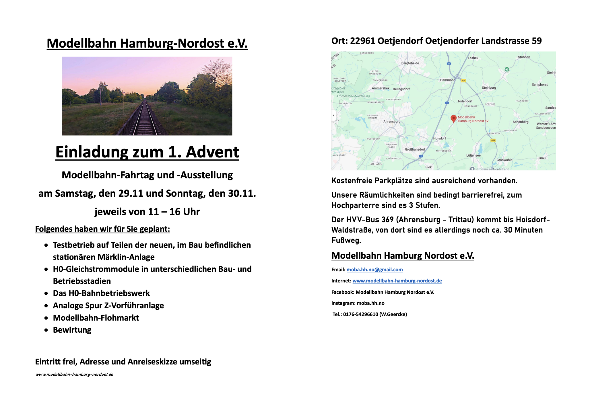 Sa./So. 29./30.11.2025: Modellbahn-Fahrtag und -Ausstellung